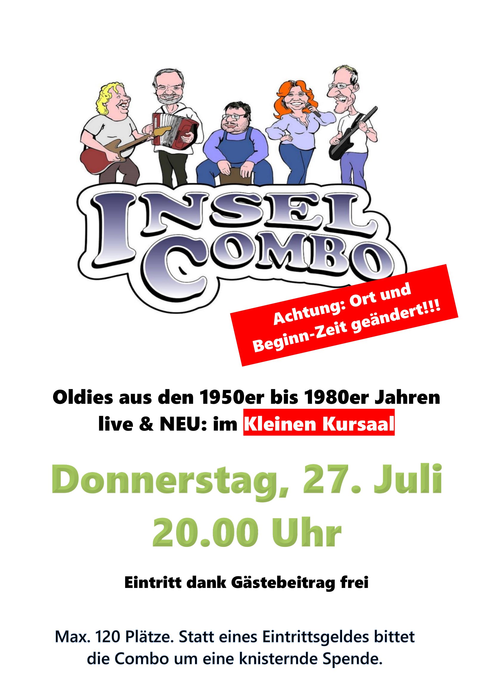 Aktuelles Leute 26.07.2023 Inselcombo Do.27.07.23 – 20.00 Uhr Kleiner Kursaal 26. Juli 202326. Juli 2023 peter Post Views: 703