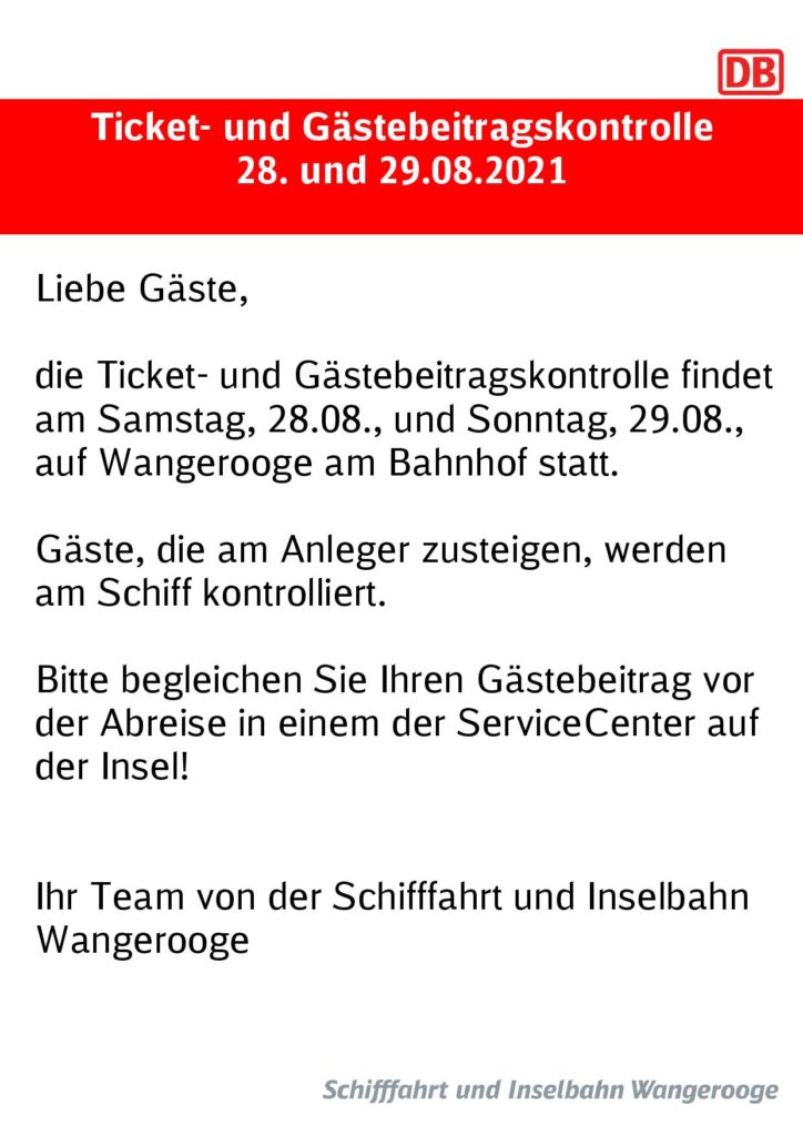 27.08.2021 DB/SIW Ticket- und Gästebeitragskontrolle 28. und 29.08.2021