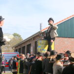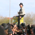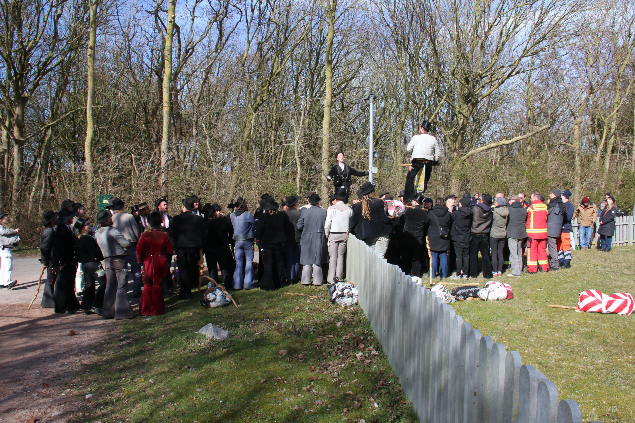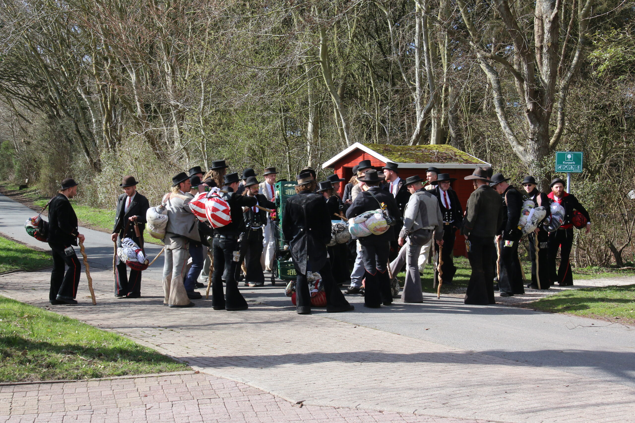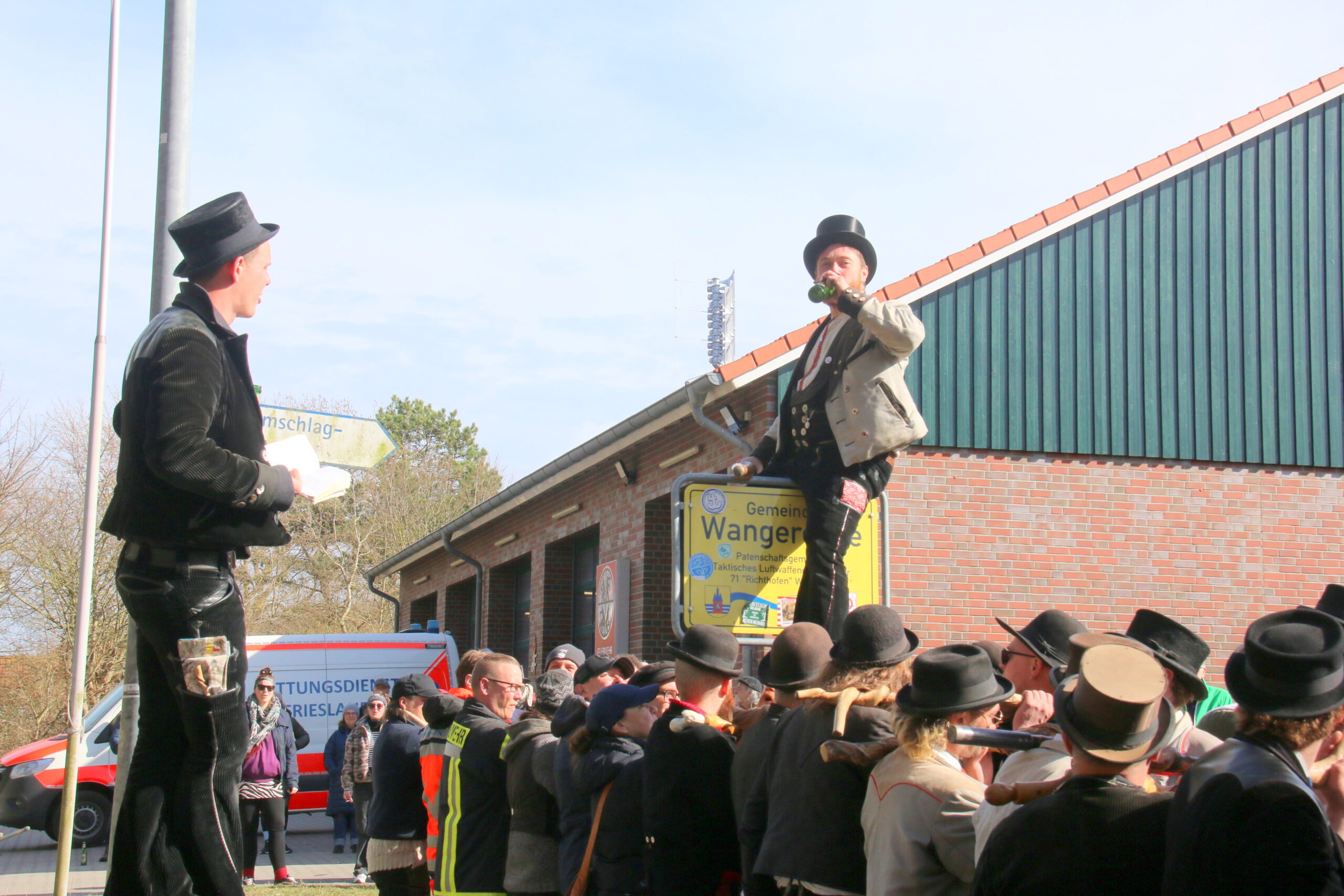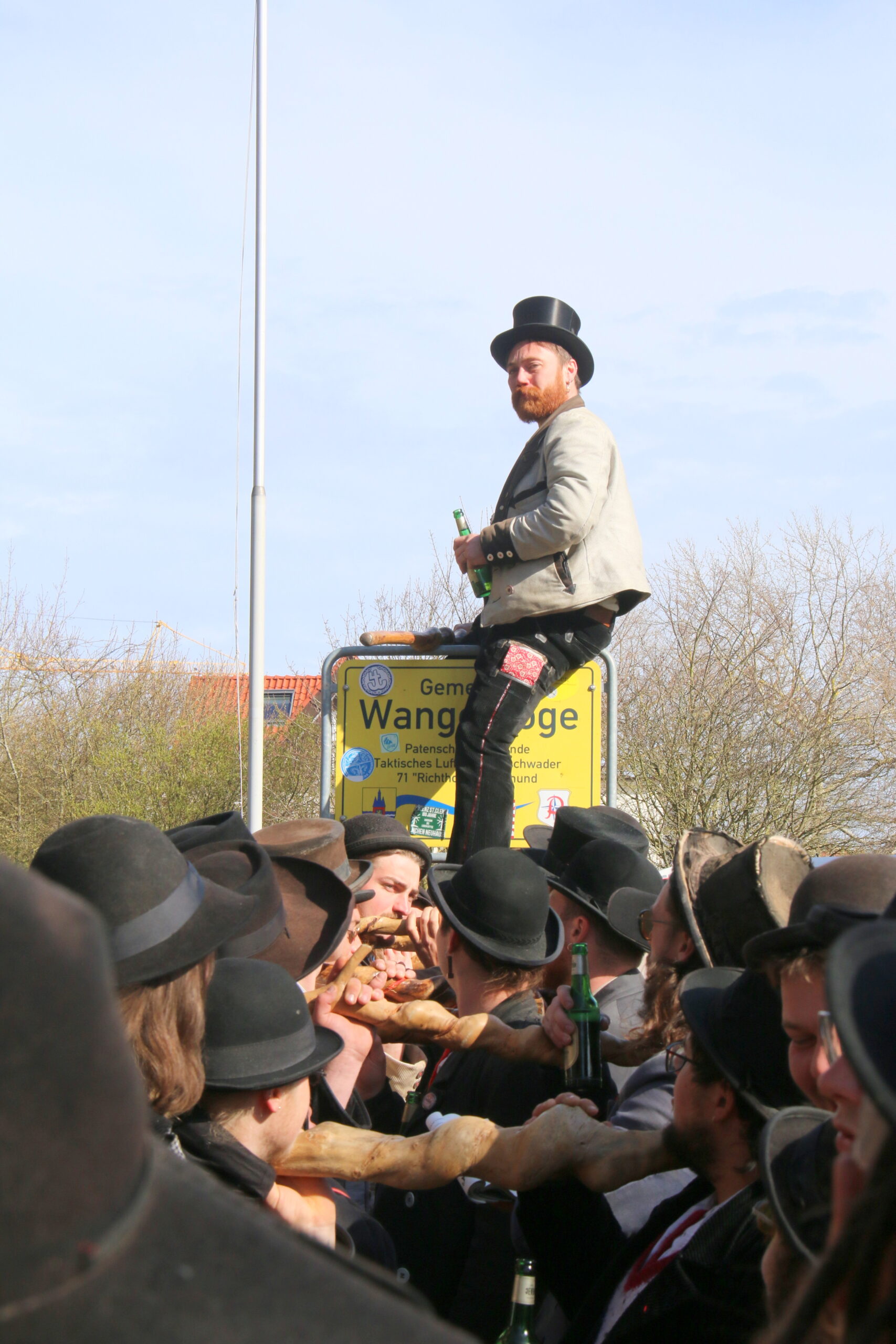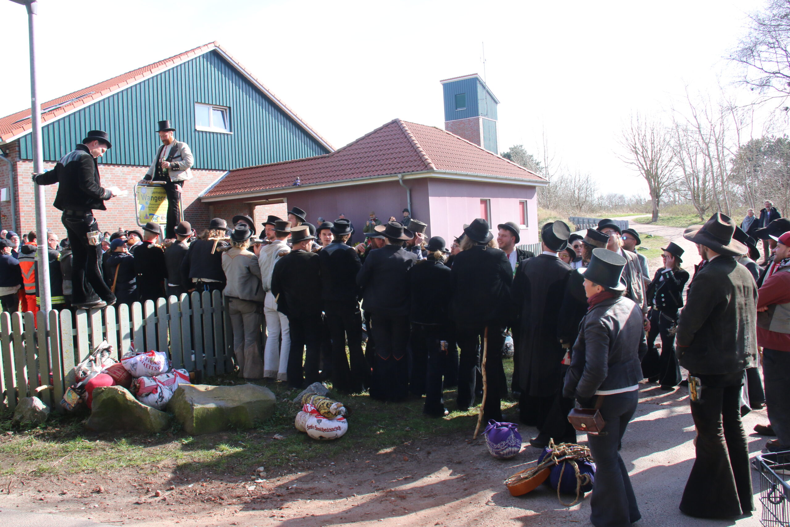 Nach viereinhalb Jahren kehrte der Zimmermannsgeselle Steffen Schrell am Samstag zurück nach Wangerooge. Begleitet wurde er dabei von gut 50 Freunden, seine Wandergesellen. An der Feuerwache an der Straße zum Westen wurde ihm von seiner Familie und Inselfreunden ein Empfang bereitet. Wie es der Brauch der Walz fordert, musste Steffen am Ende seiner langer Wanderschaft, ein Ortsschild am Anfang des Heimatdorfes übersteigen, auf Wangerooge musste dafür das Patenschaftsschild des Richtofengeschwaders herhalten. Seine Wandergesellen bauten ihm dazu eine Treppe aus ihren Wanderstäben, auf der anderen Seite des Schildes bereiteten ihm seine Freunde mit ihren Armen eine weiche Landung.