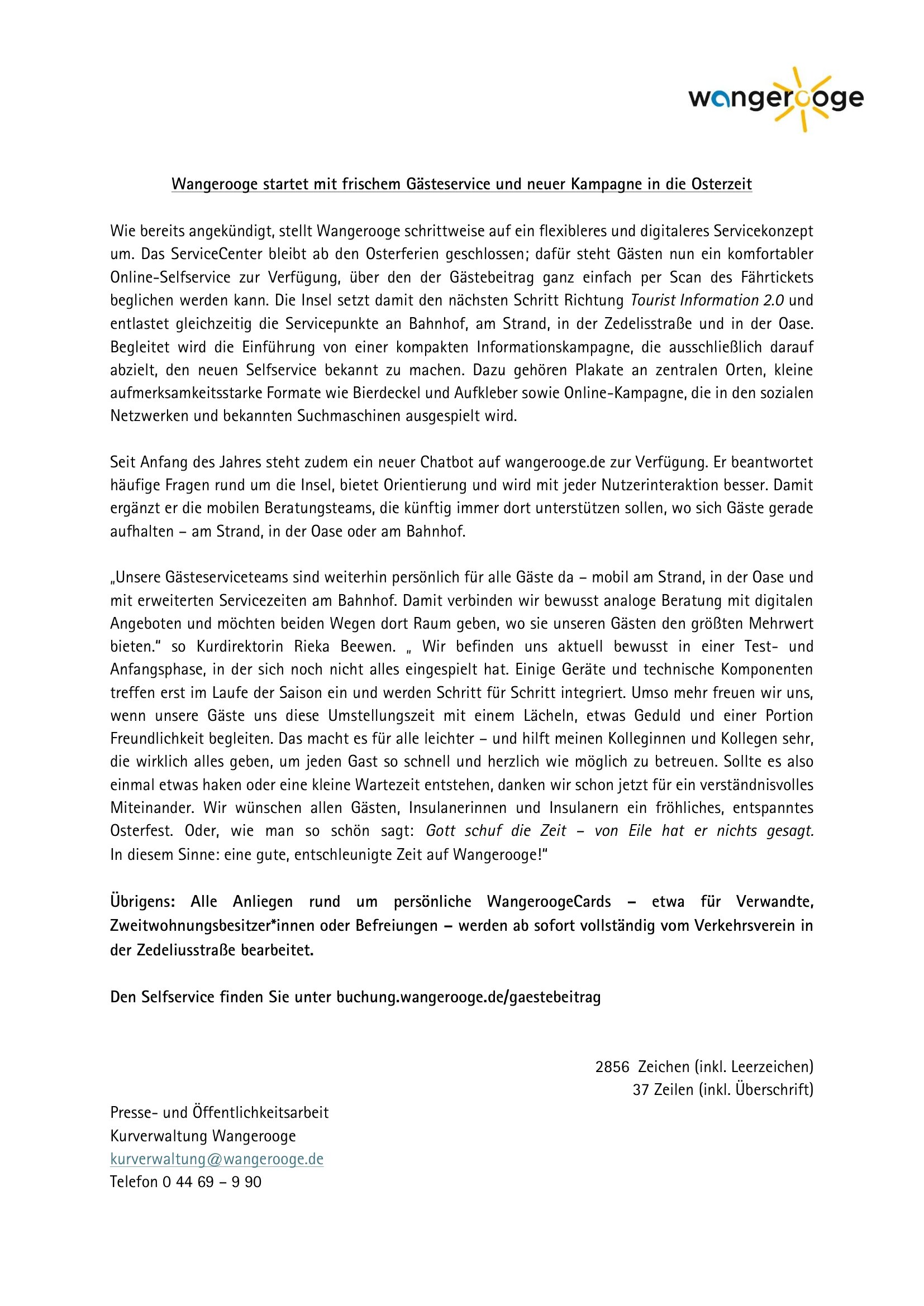 29.03.2026 Wangerooge startet mit frischem Gästeservice und neuer Kampagne in die Osterzeit