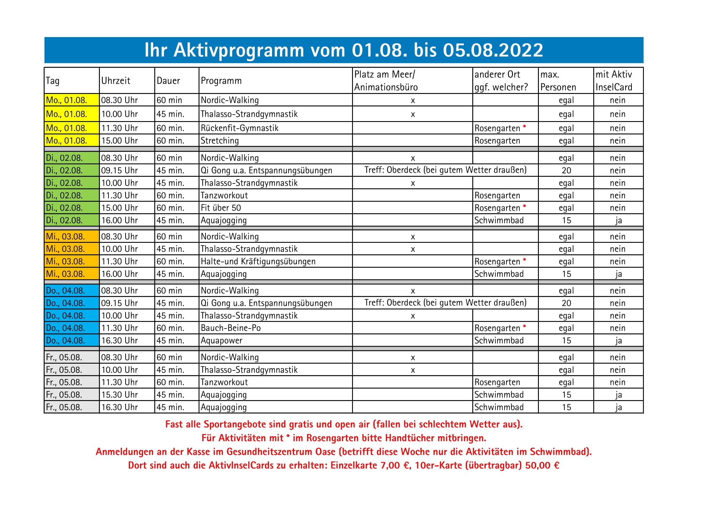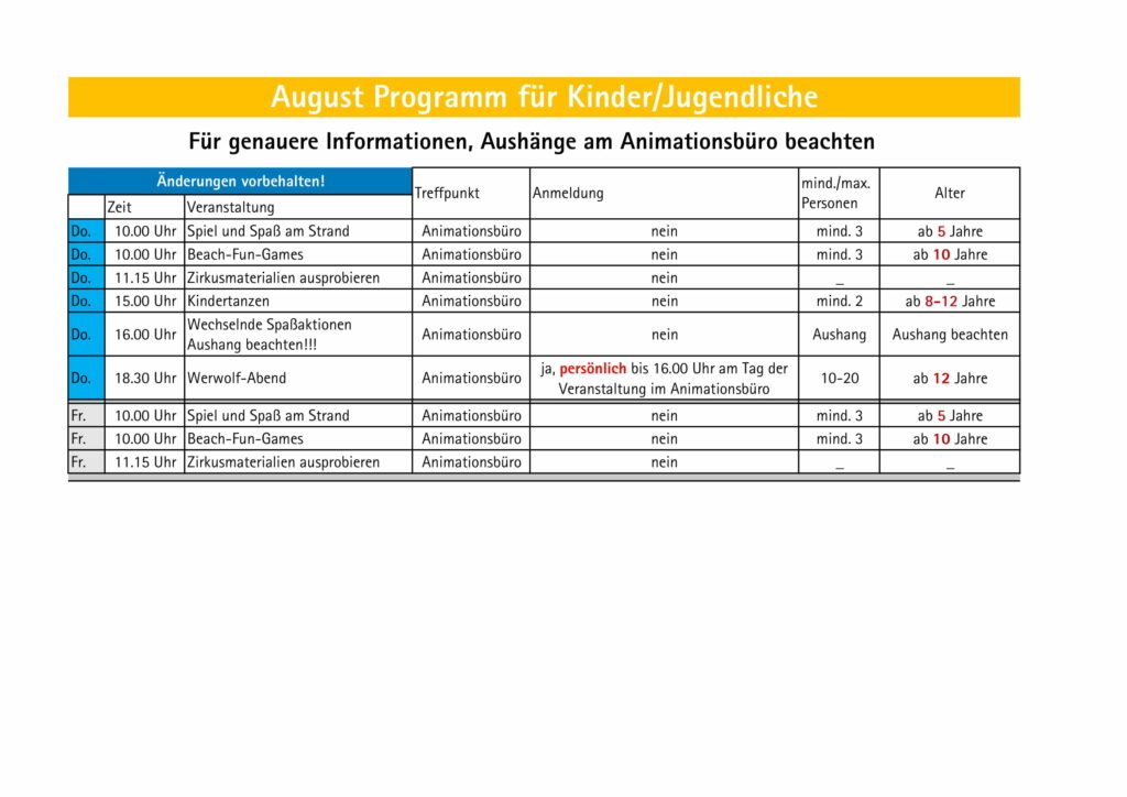 29.07.2022 Sportanimation und Kinderprogramm im August
