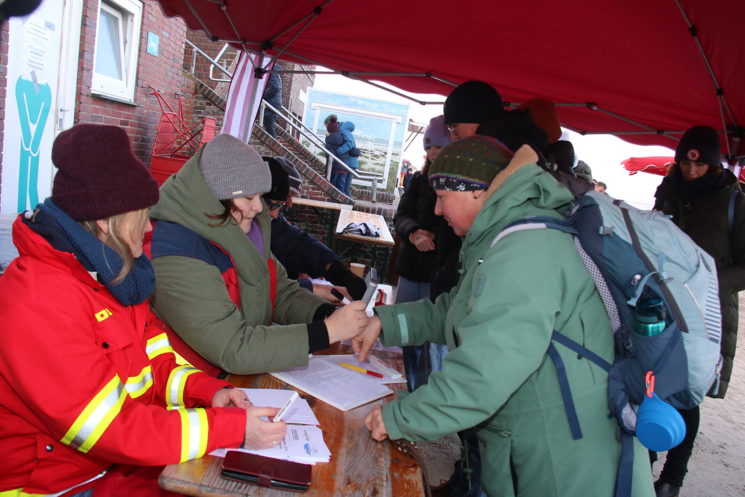 Bei 7 Grad Lufttemperatur und 5 Grad kaltem Nordseewasser wagten sich unter dem Beifall von ca. 1.500 Zuschauern zahlreiche Teilnehmerinnen und Teilnehmer ins Meer. Die DLRG-Ortsgruppe Wangerooge veranstaltete das Jahresabbaden bereits zum 22. Mal und stellte dabei einen neuen Rekord auf: 371 Menschen nahmen teil – 78 mehr als beim bisherigen Rekord aus dem Jahr 2024 mit 295 Teilnehmenden.