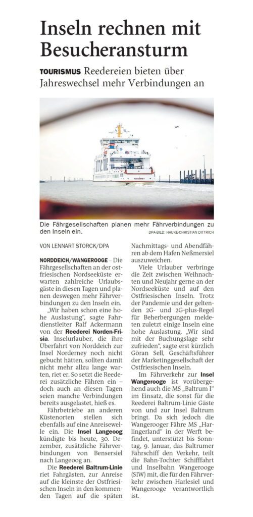 • 04.02.2026 Jeversches Wochenblatt – Fährverkehr von und nach Wangerooge eingestellt