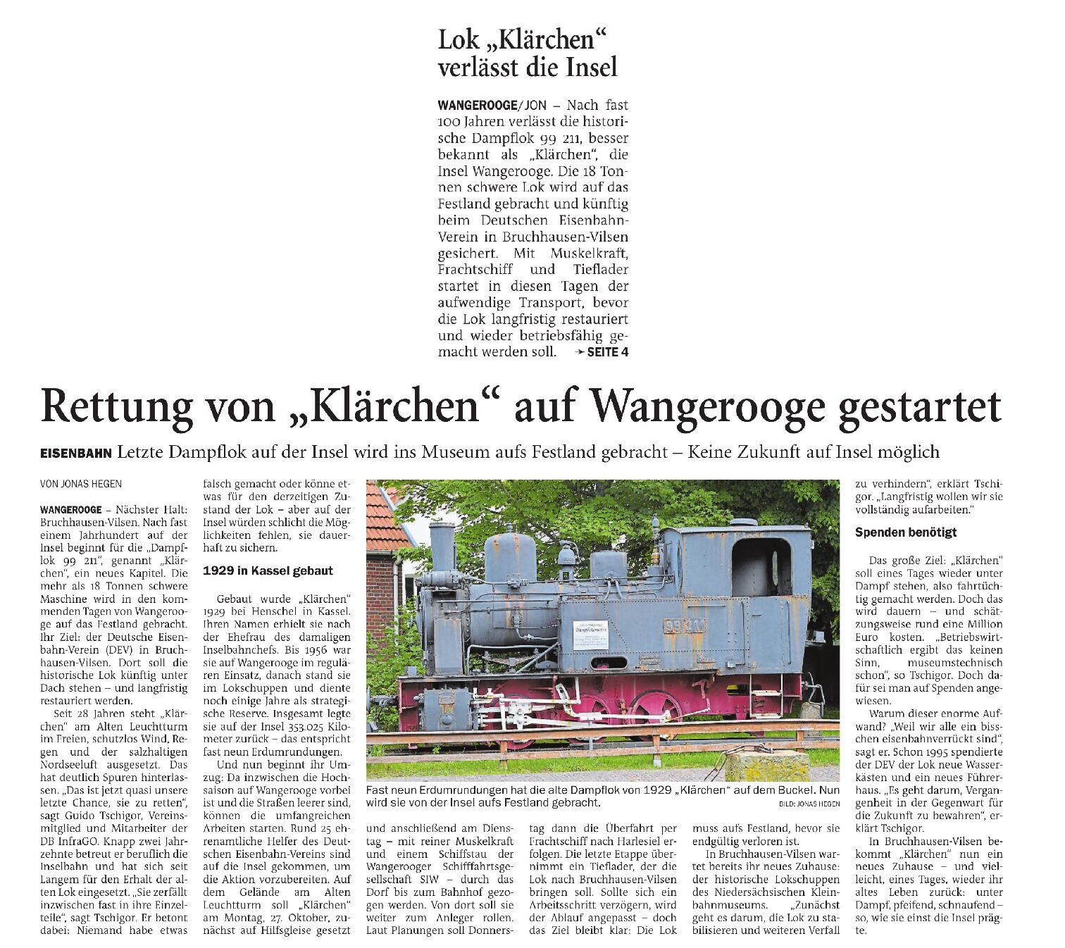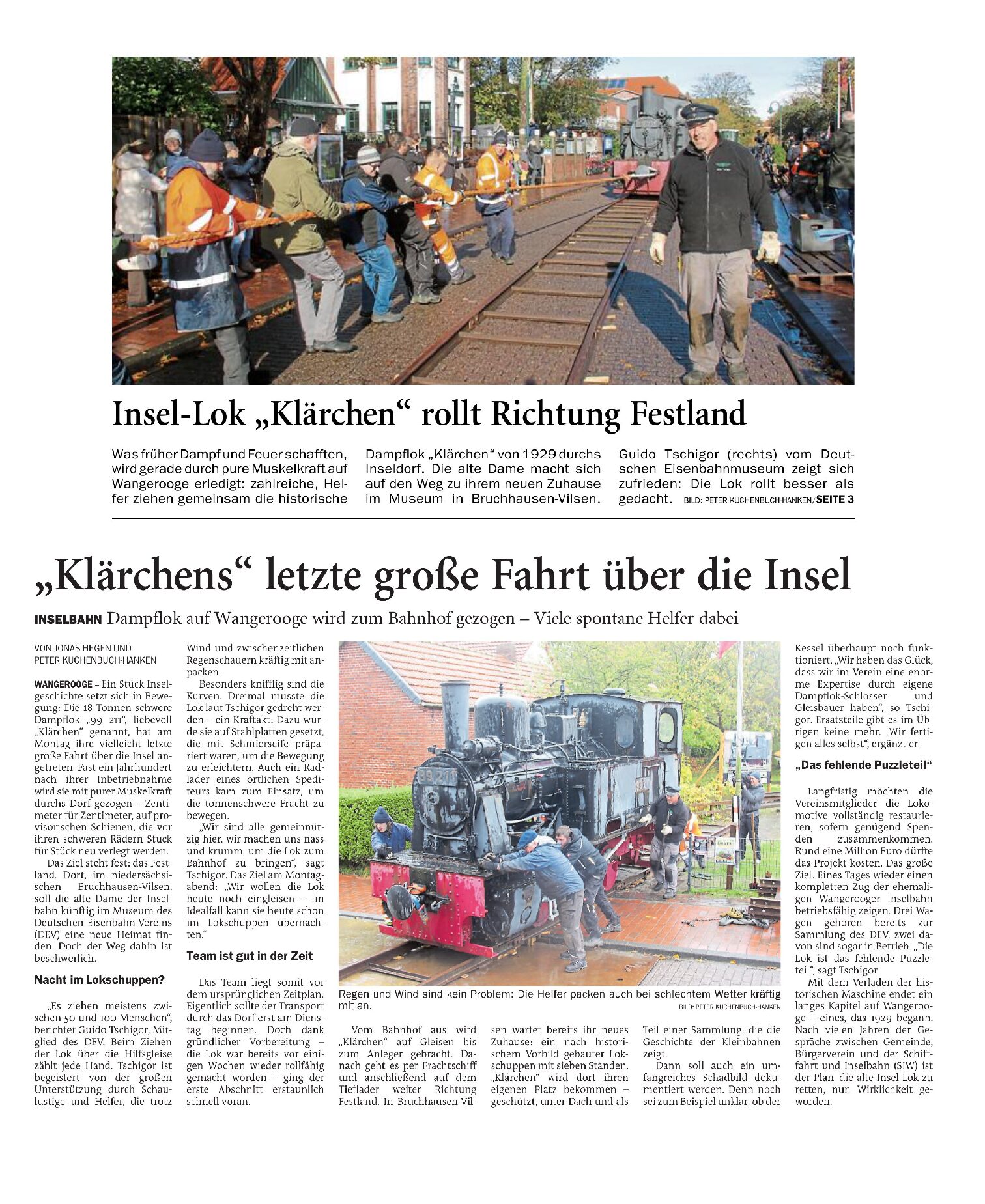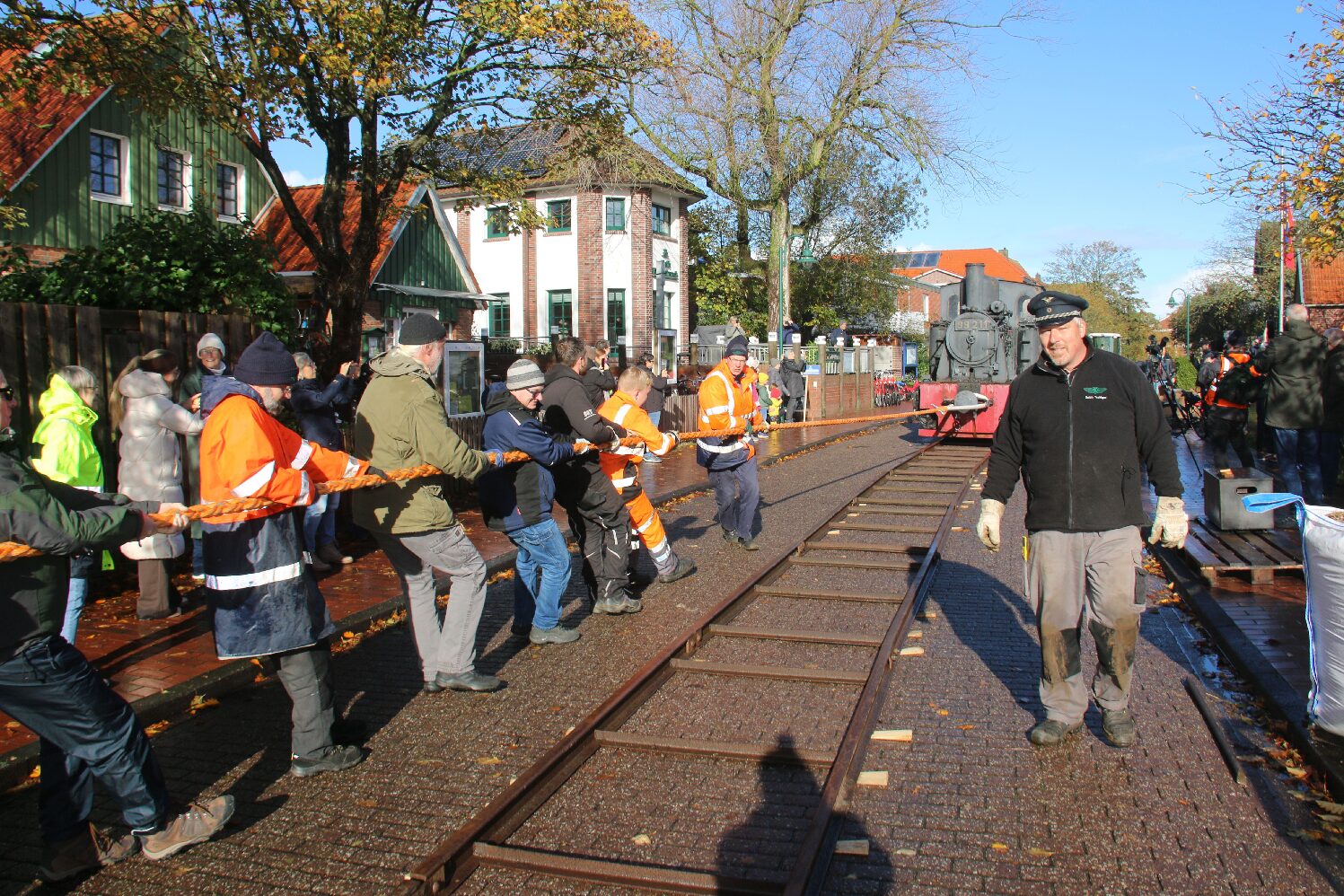 27.10.2025 Dampflokomotvie “Klärchen” verlässt die Insel – Fotos und Video Viele Wangerooger ließen es sich nehmen ihre Dampflokomotive “Klärchen” beim