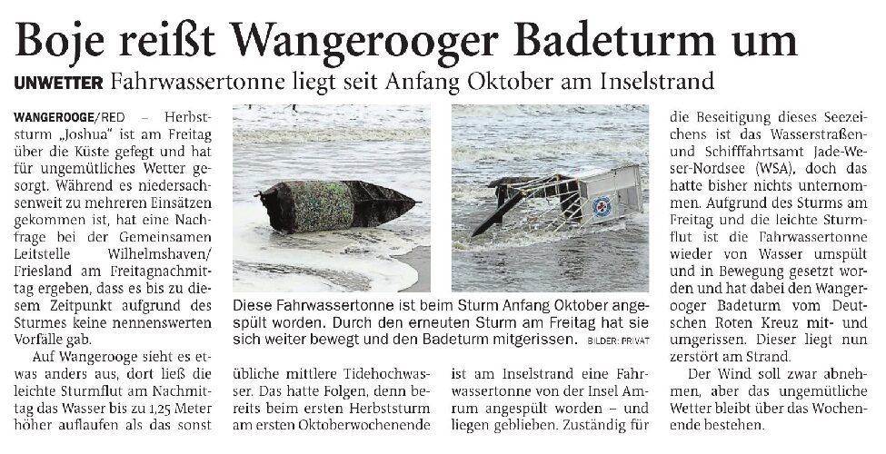 26.10.2025 Sonntagmittaghochwasser schon die 3. “Leichte Sturmflut” von Sturm “Joshua” – Freitag hat Fahrwassertonne Badeturm im Hauptbad zerstört Sturm “Joshua”