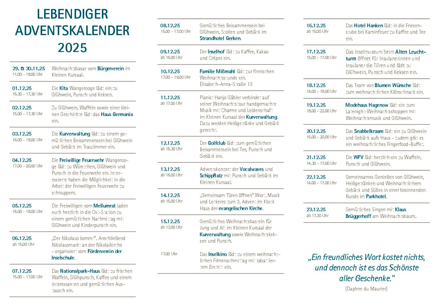 11.11.2025 Eröffnung 67. Aktion Brot-für-die-Welt im Kirchenkreis FRI-WHV auf Wangerooge – So.30.11.25 – 10.30 Uhr ev. Nikolaikirche Am 1. Advent,