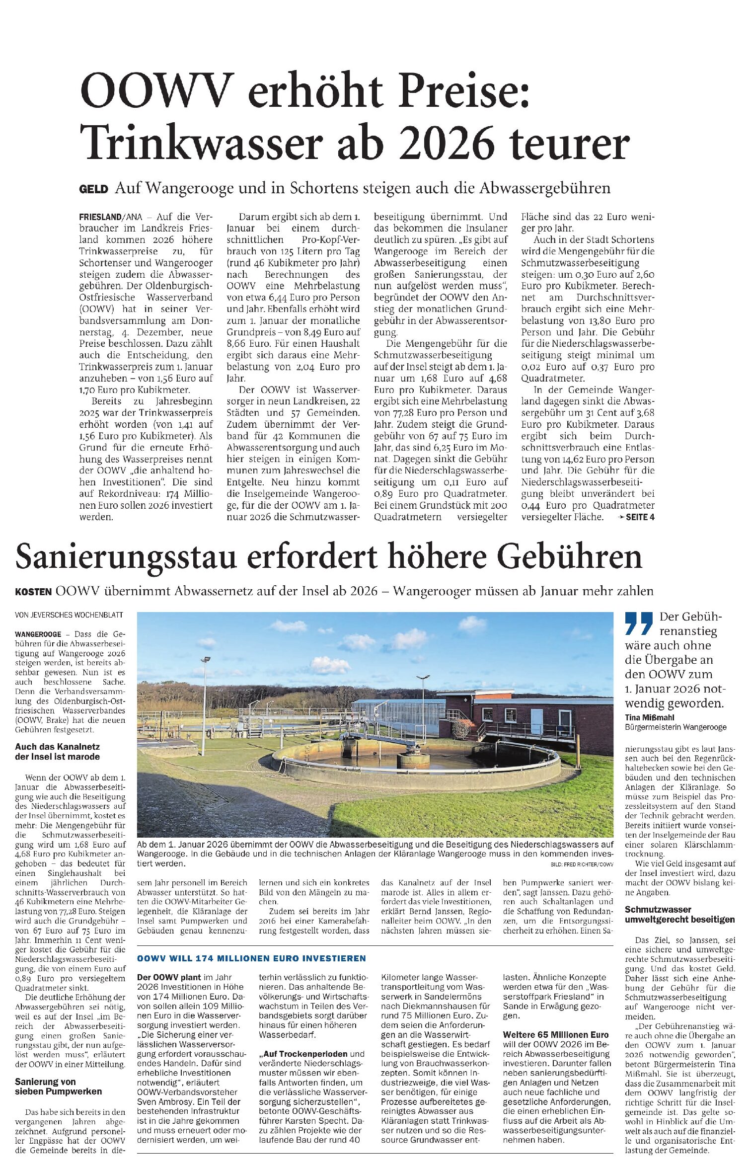 14.11.2025 OOWV übernimmt die Abwasserentsorgung auf Wangerooge – Investitionen und Transparenz im Fokus Post Views: 611