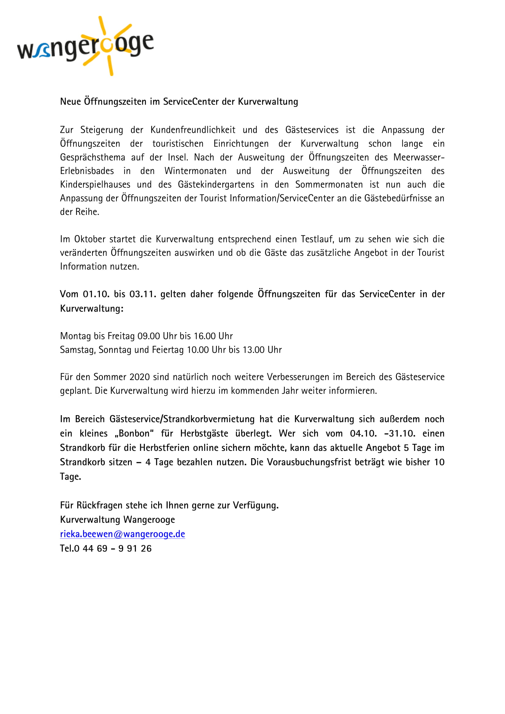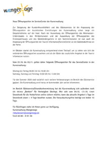 Neue Öffnungszeiten ServiceCenter und Strandkorb Oktober 2019 PM-1