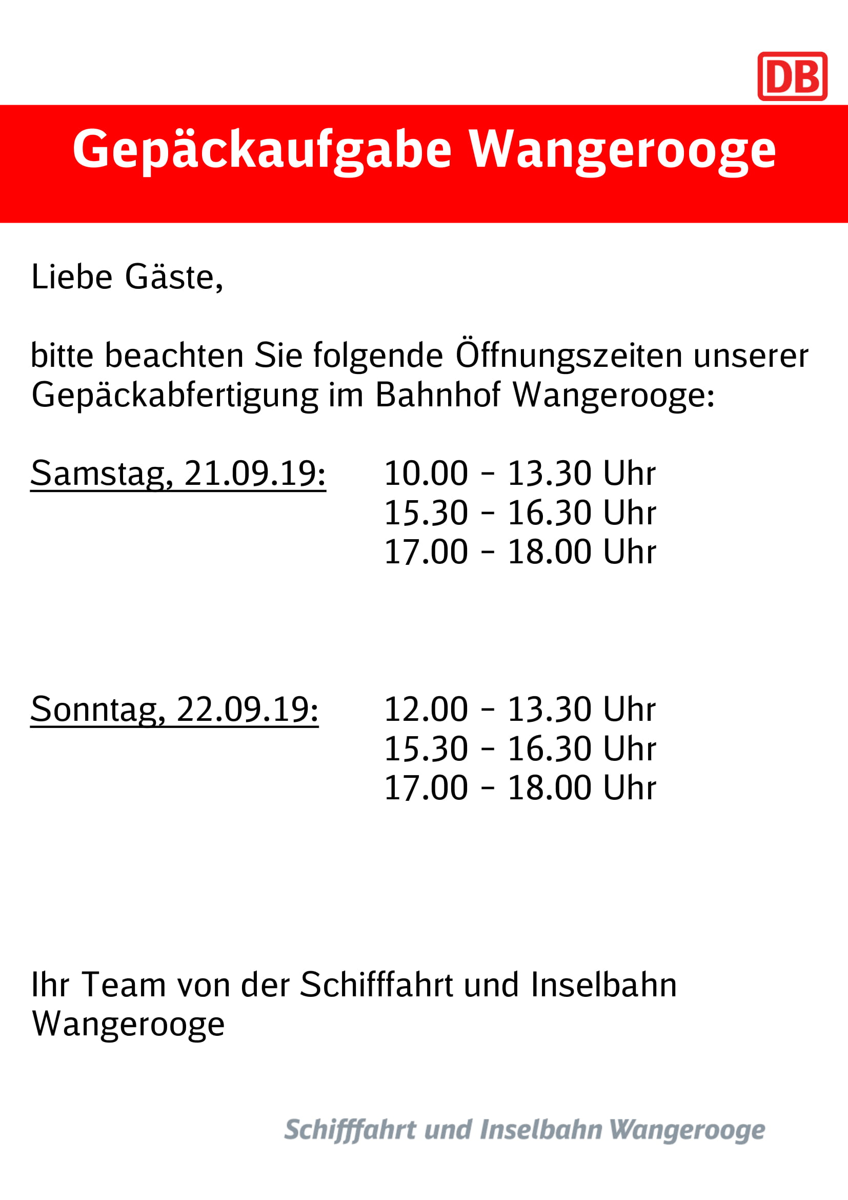 Öffnungszeiten Gepäckabfertigung 21.09.-22.09.19-1