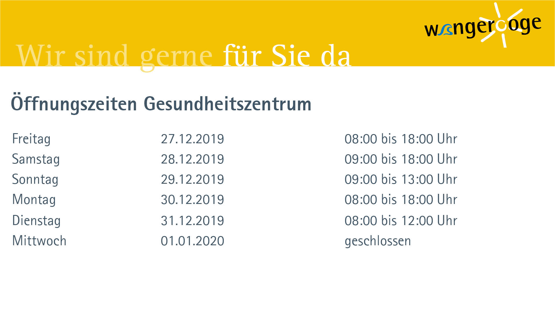 Oeffnungszeiten Gesundheitszentrum Jahreswechsel 2020