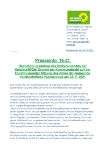 Presseinfo 16-21 Die Grünen Wangerooger – Nachzählung der Kommunalwahl konstituierende Sitzung 23.11.2021-page-001